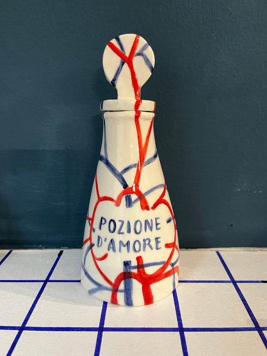 Ampolla pozione d'amore in ceramica modellata e dipinta a mano