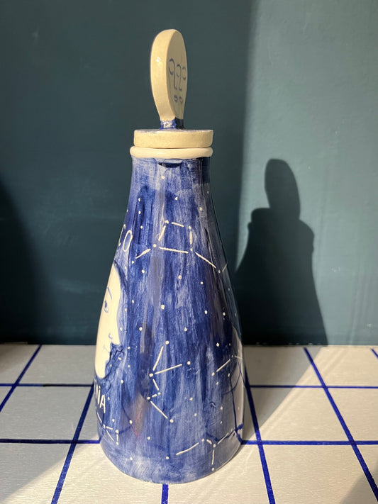 Ampolla succo di luna piena in ceramica modellata e dipinta a mano