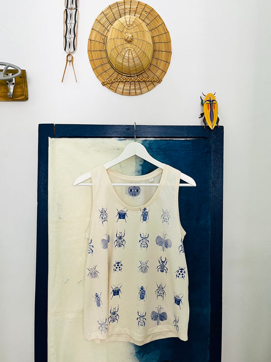 canotta color bianco o raw serigrafata con insetti maschera blu o rossi