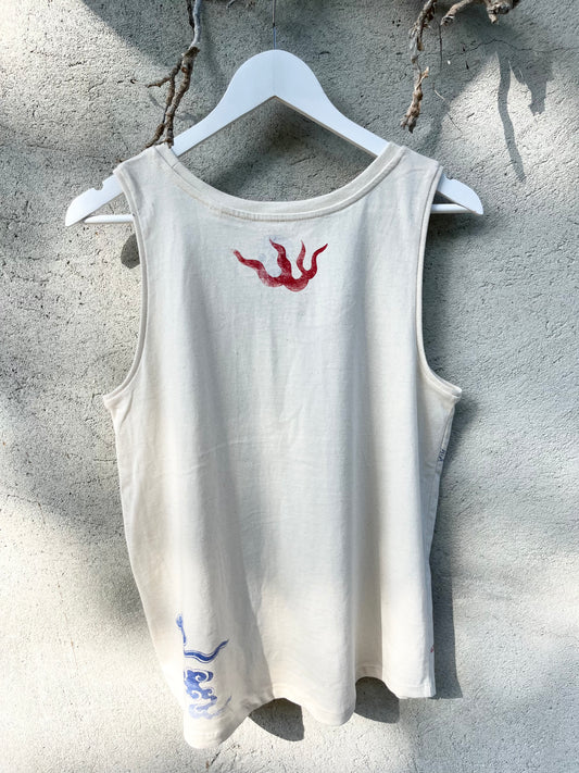 canotta color bianco o raw serigrafata con dragone blu o rosso e nuvole