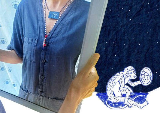 collana talismano contro le doppie facce ricamato a mano su stoffa immersa nell'indigo (copia)