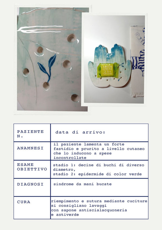 gomma per cancellare errori e sbagli in ceramica modellata e dipinta a mano