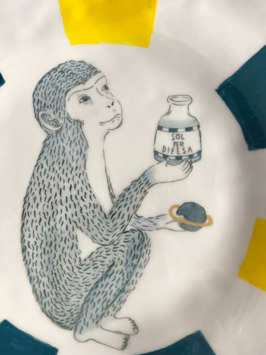 piatto in ceramica con scimmia