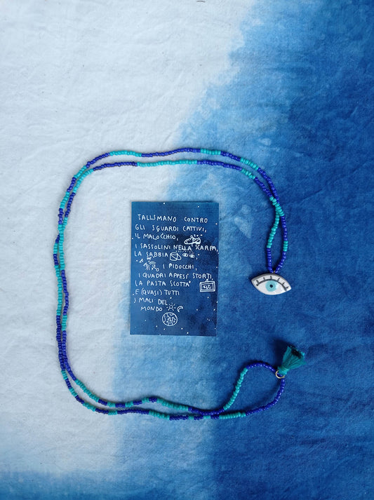 collana talisMANO con ciondolo a forma di occhio e perline colorate