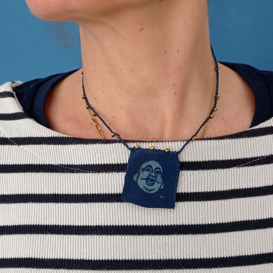 collana talismano contro le doppie facce ricamato a mano su stoffa immersa nell'indigo (copia)