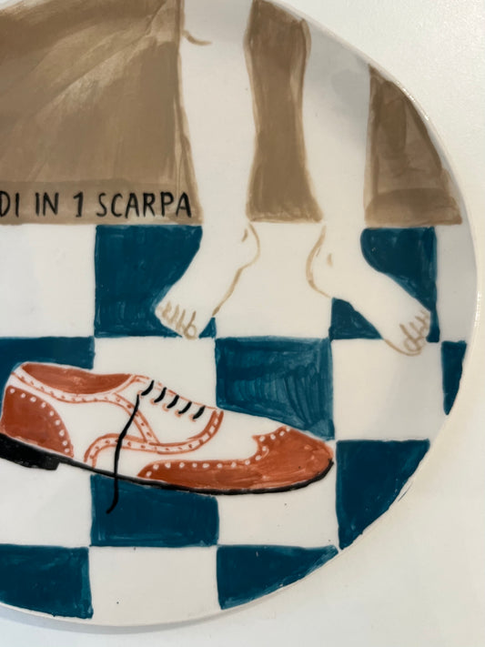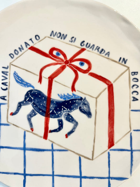 piatto in ceramica "uomo avvisato, mezzo salvato"