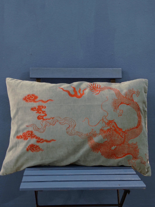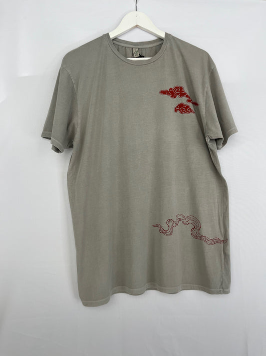 tshirt grigio stone tinta in capo con dragone serigrafato color mattone