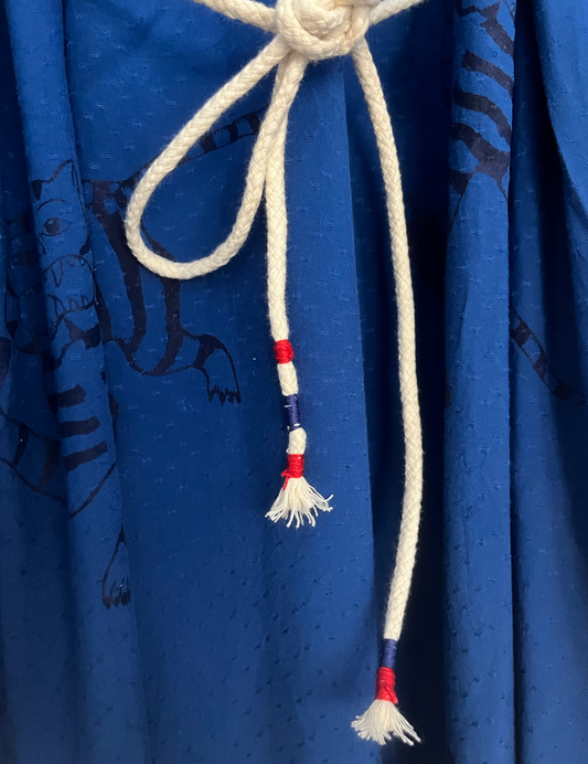sciapone in lana e seta deadstock serigrafato con tigri blu