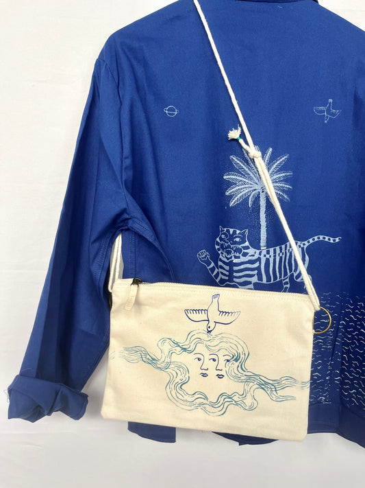 camicia upcycled 100% seta blu slavato con aculei di istrice e amata phegea