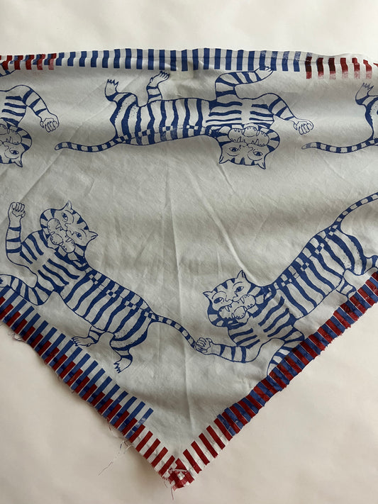 foulard bandana azzurro polvere con tigri e righe serigrafato a mano