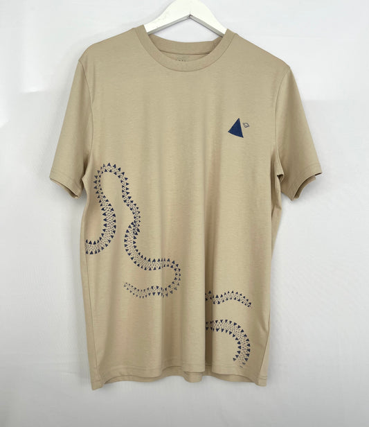 tshirt boxy raw con collare di aculei di istrice serigrafato in blu