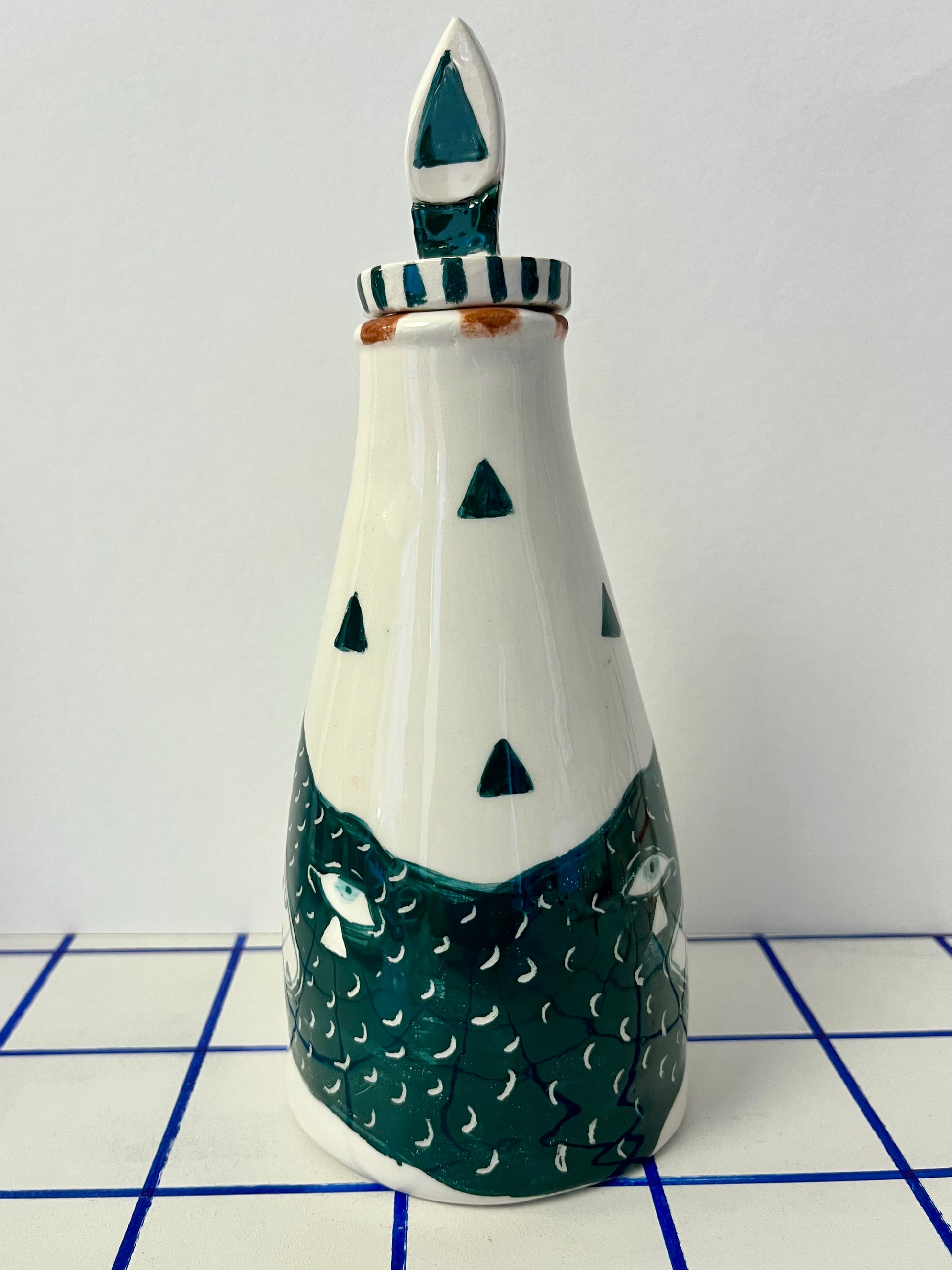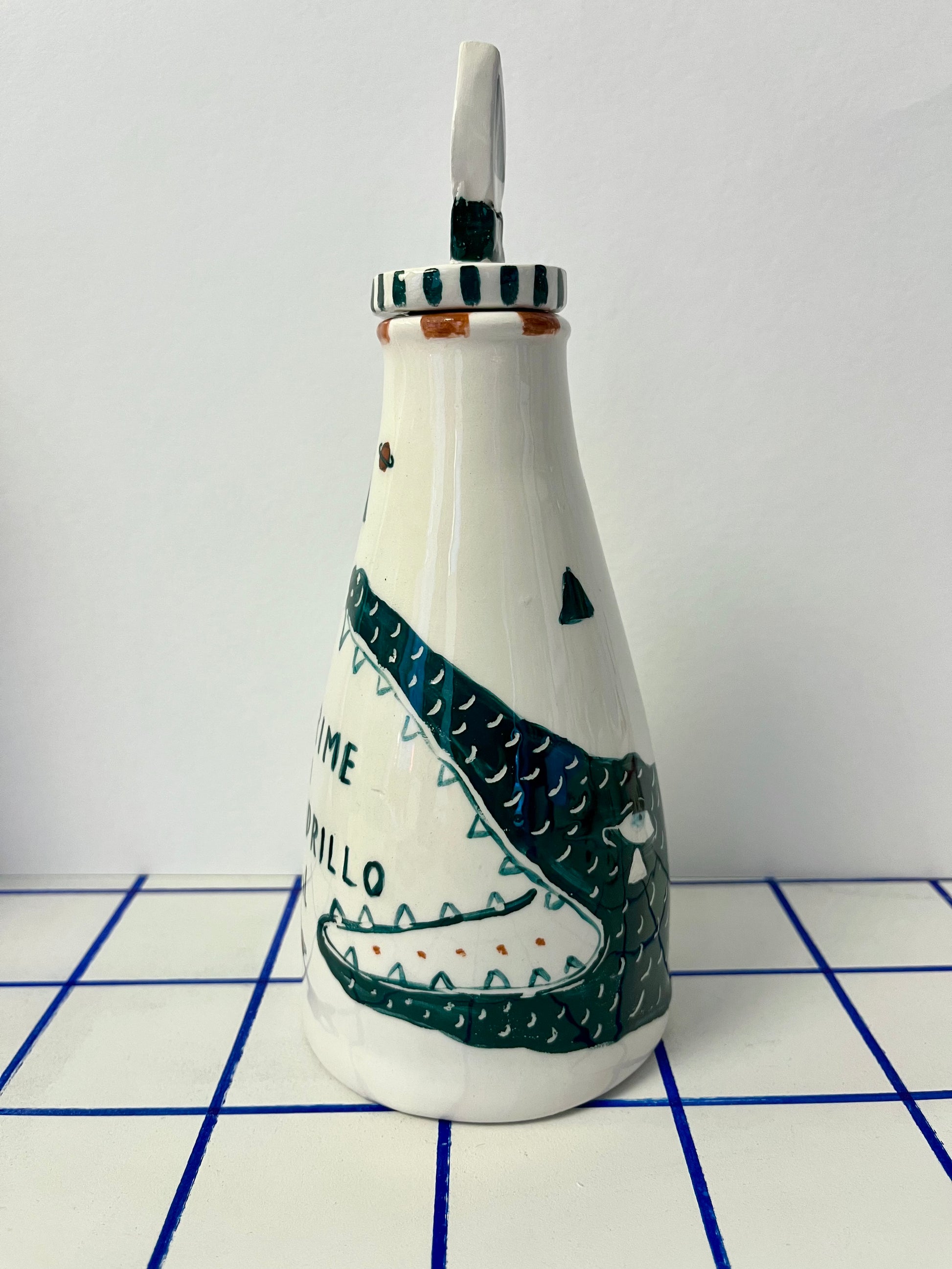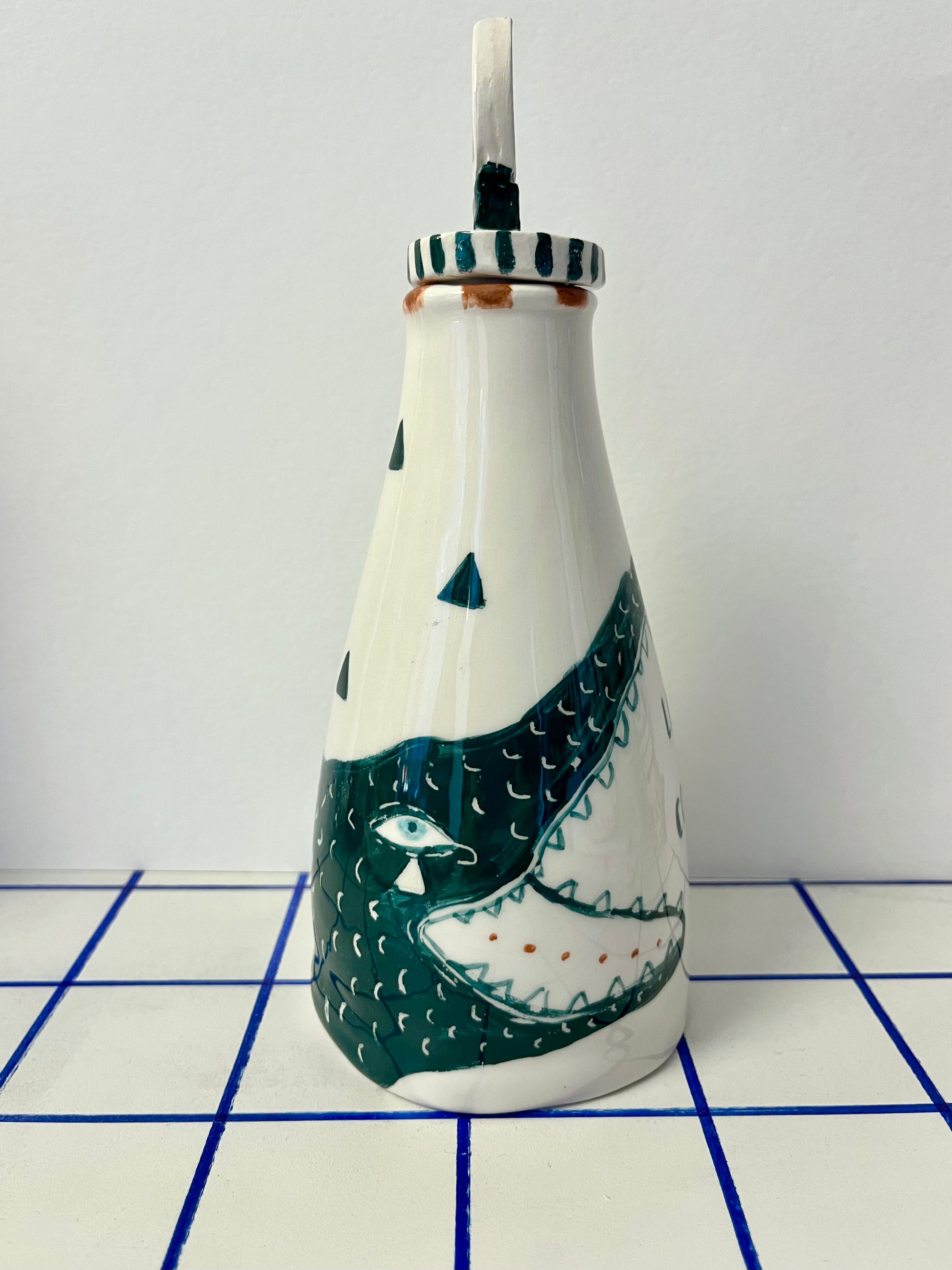 Ampolla con tappo in ceramica modellata e dipinta a mano contenente 50 ml lacrime di coccodrillo