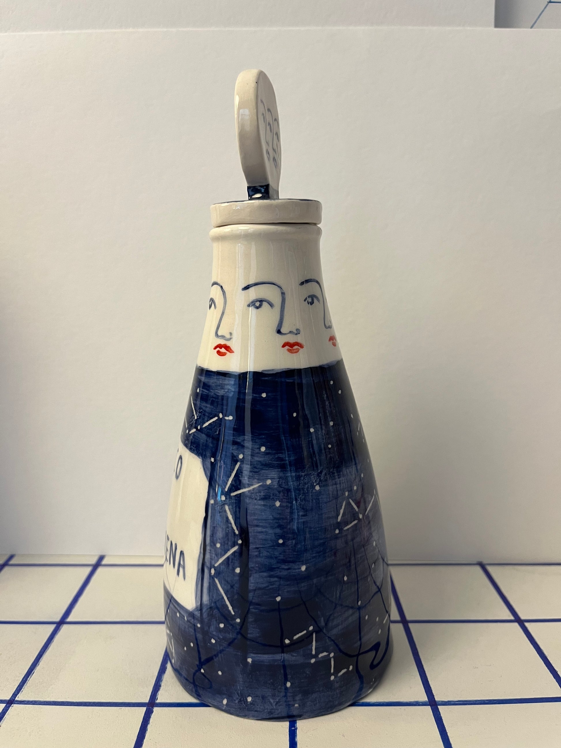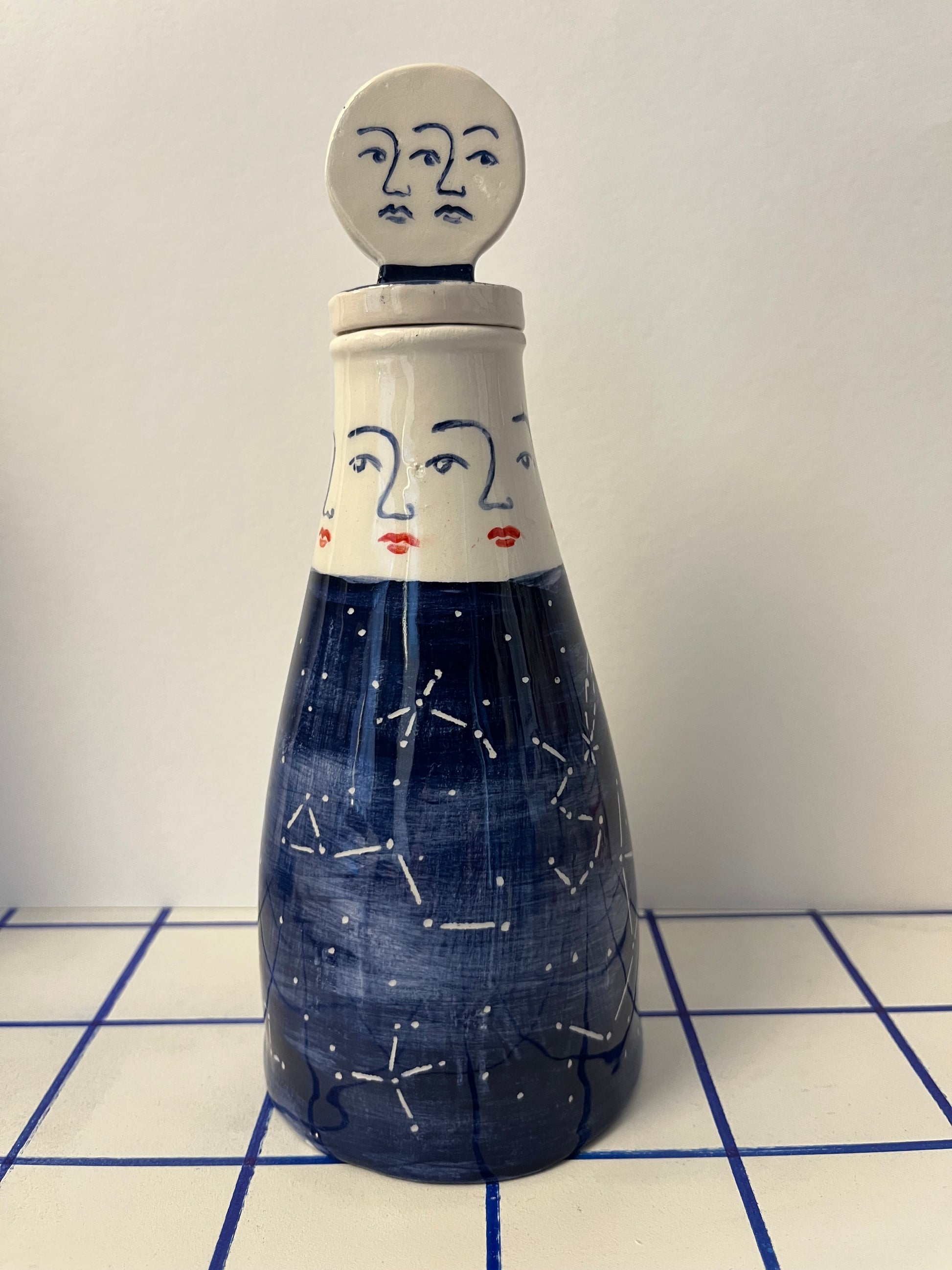 Ampolla succo di luna piena in ceramica modellata e dipinta a mano