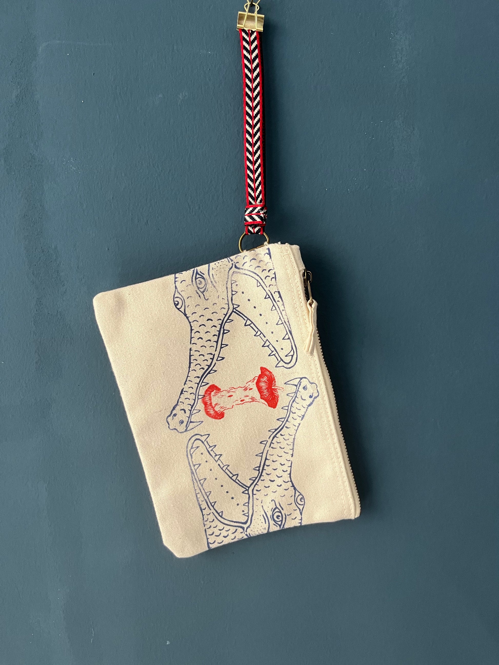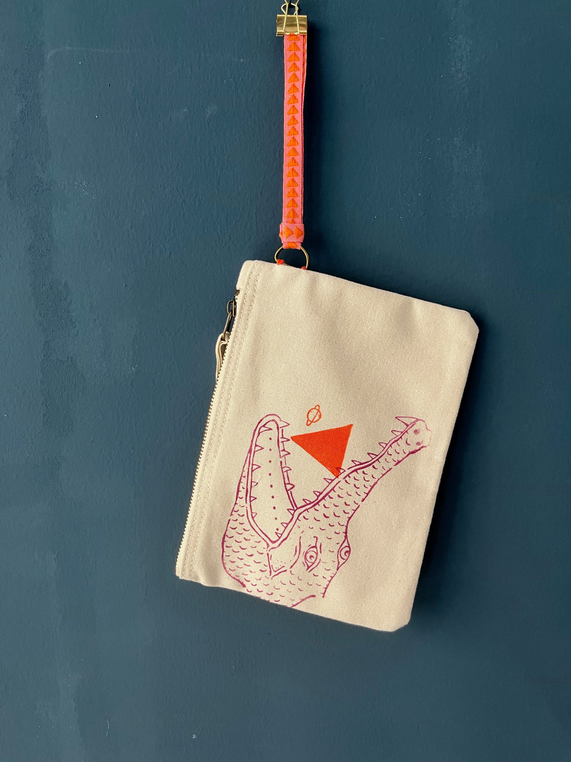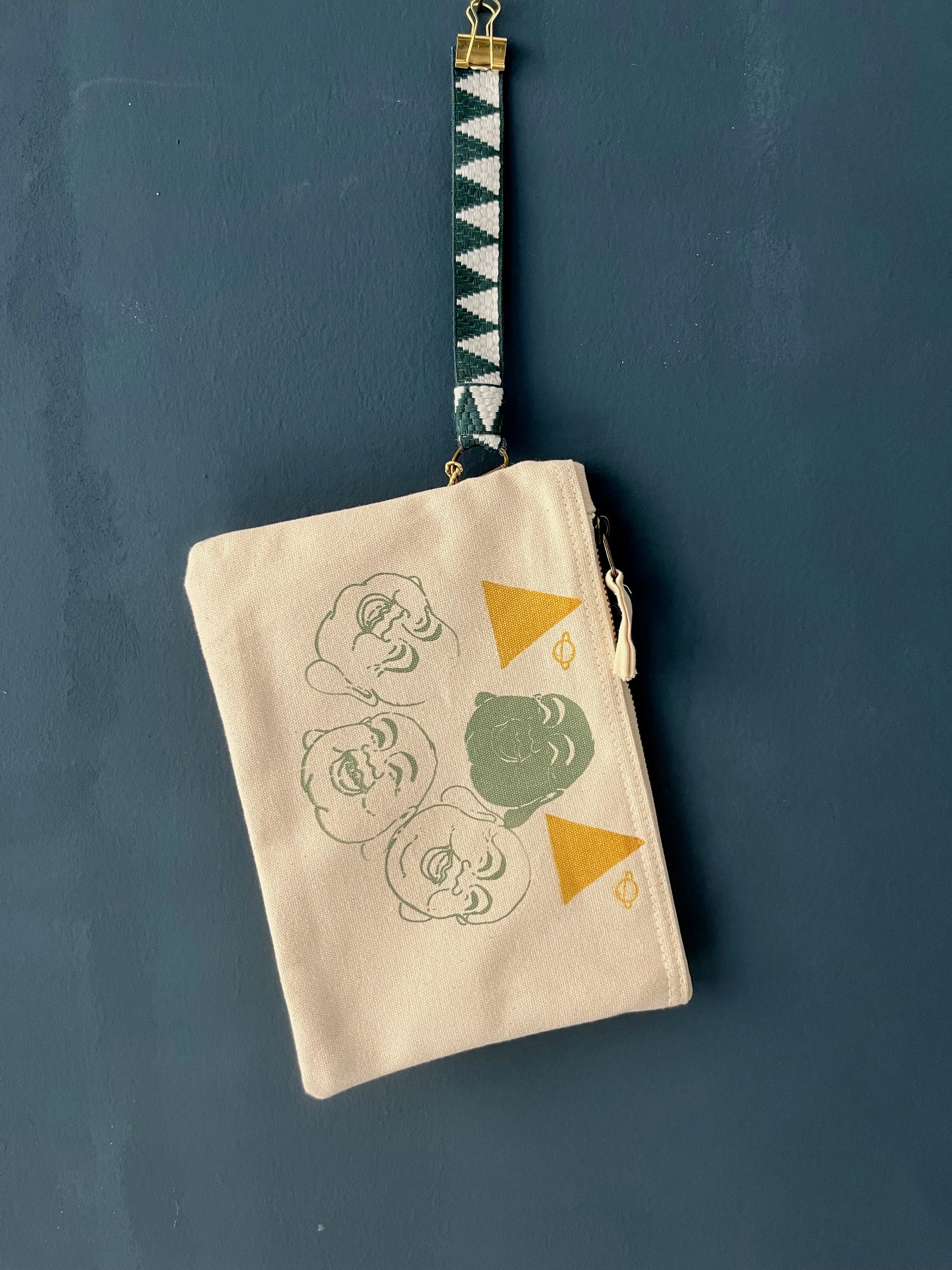 Pochette, astuccio, nécessaire piccolo in canvas di cotone spesso (400gr/mq) bianco naturale serigrafata con diverse grafiche originali vulcaniche.