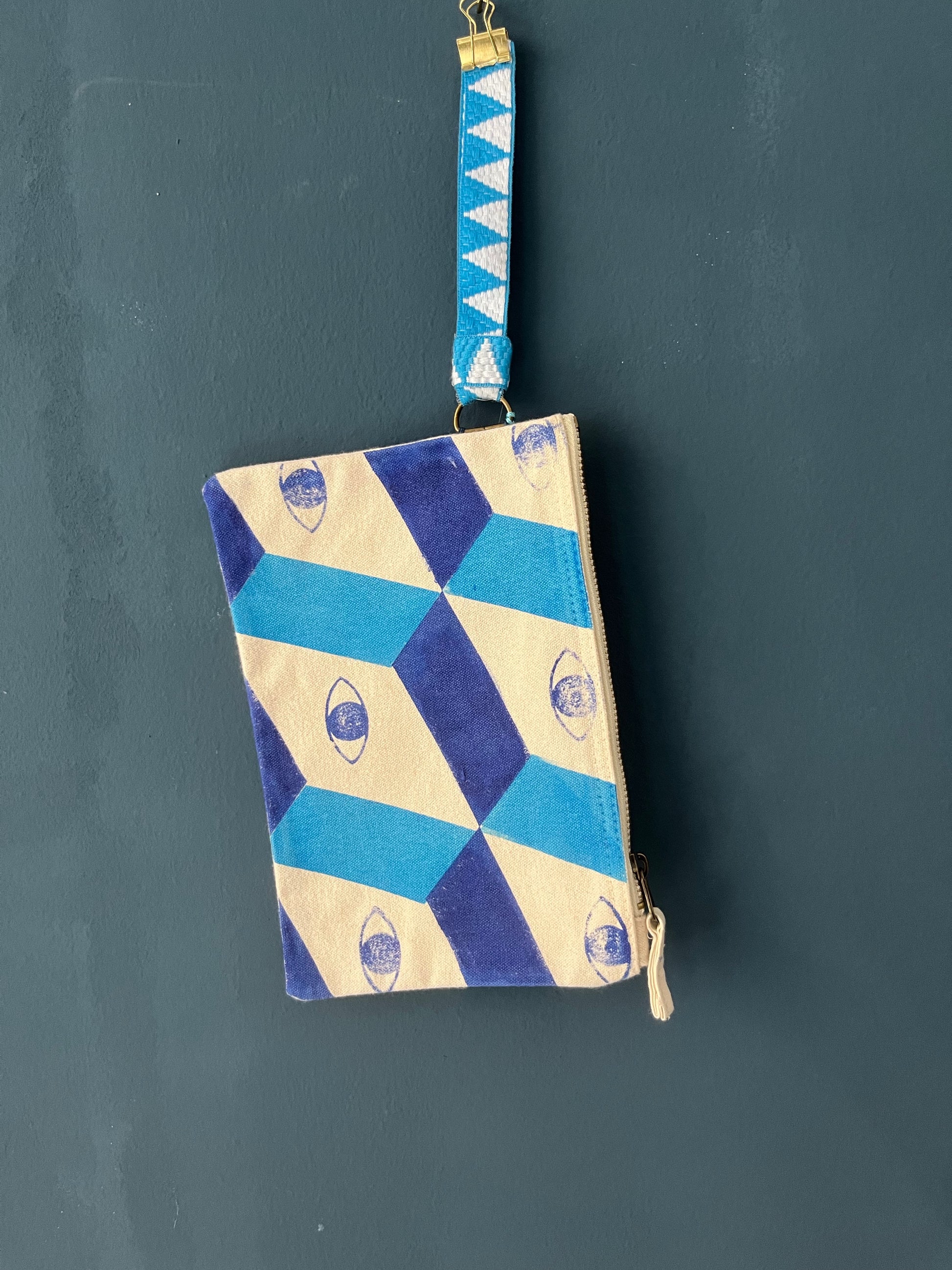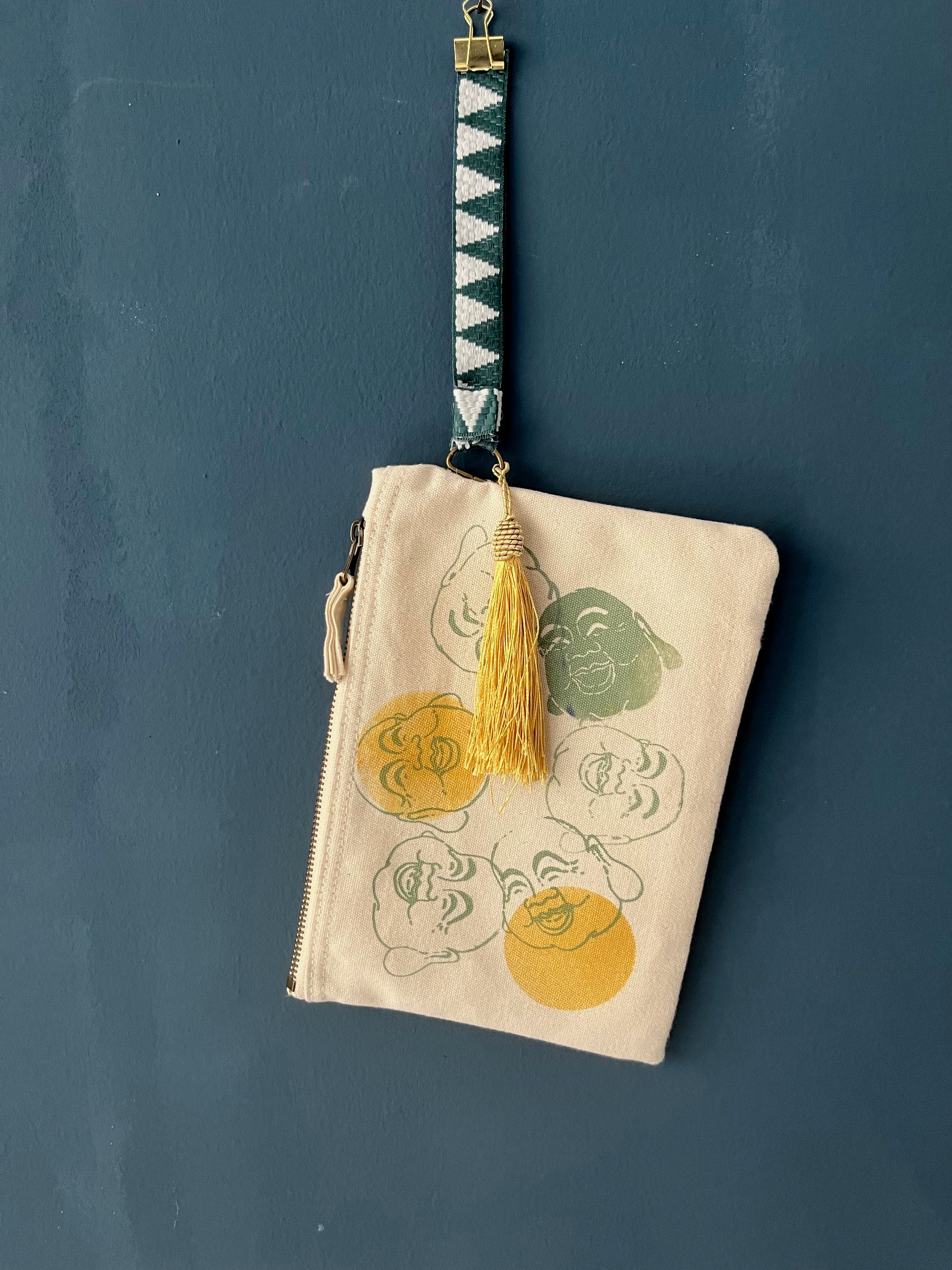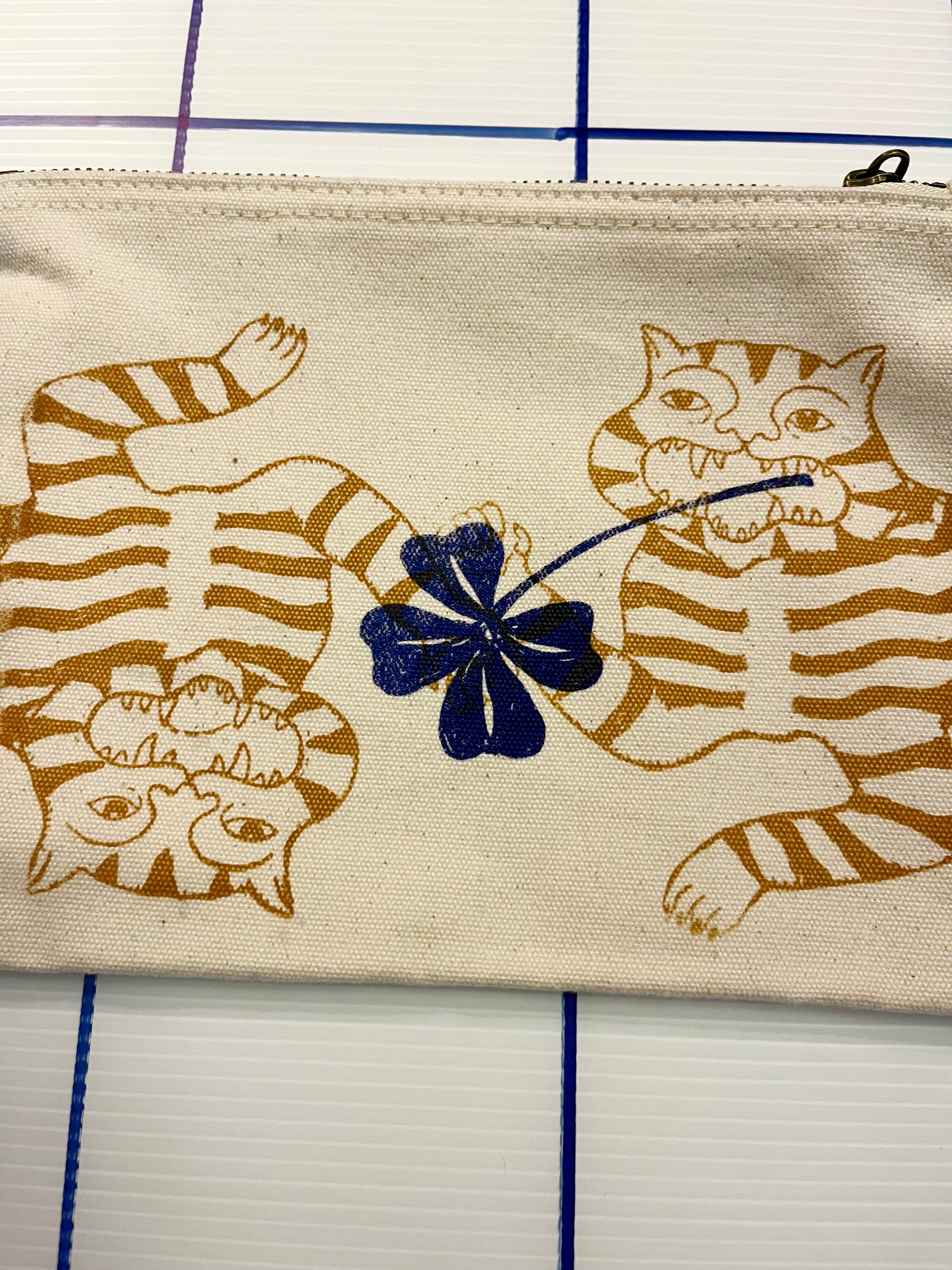 Pochette, astuccio, nécessaire piccolo in canvas di cotone spesso (400gr/mq) bianco naturale serigrafata con diverse grafiche originali vulcaniche.