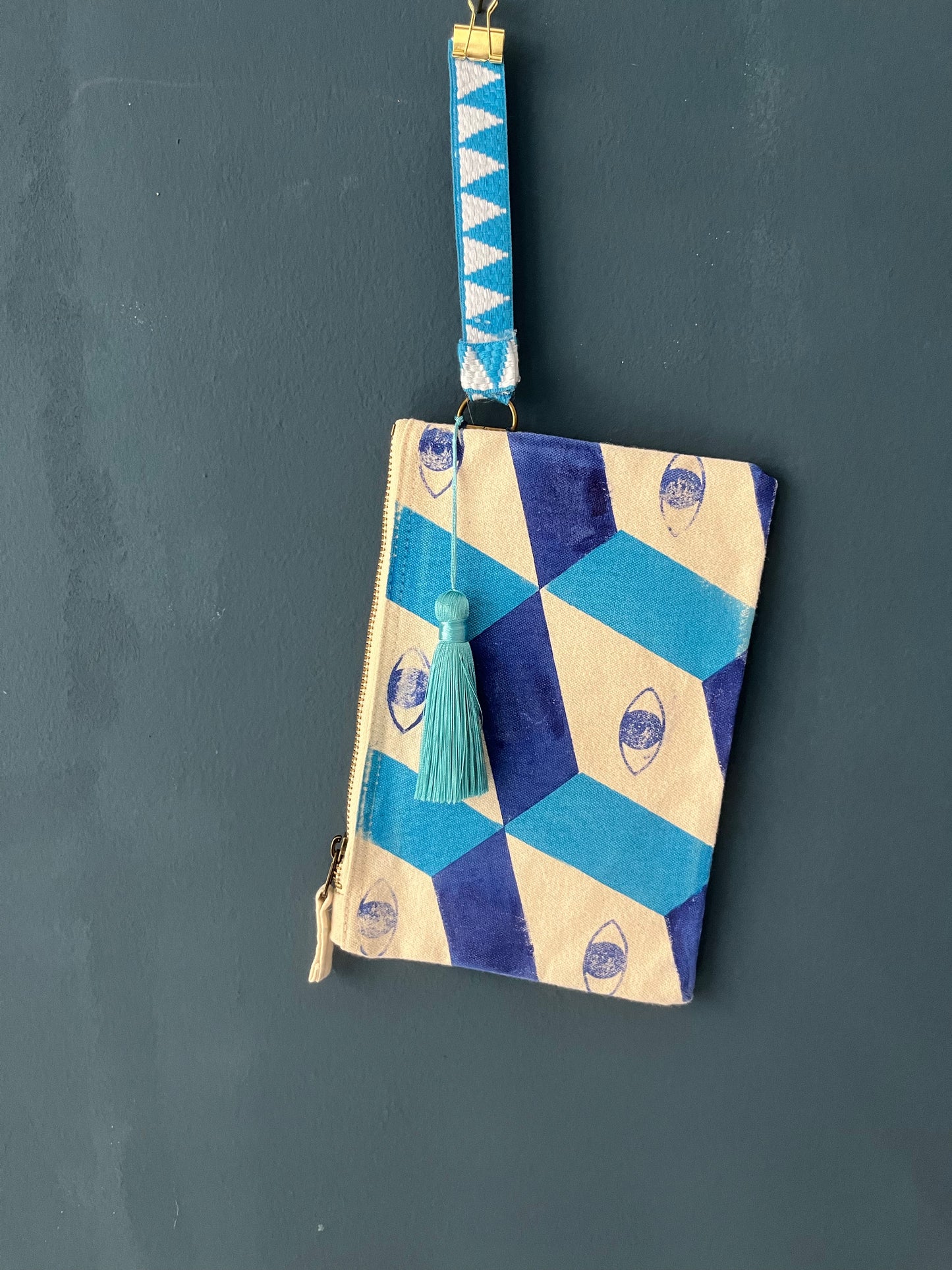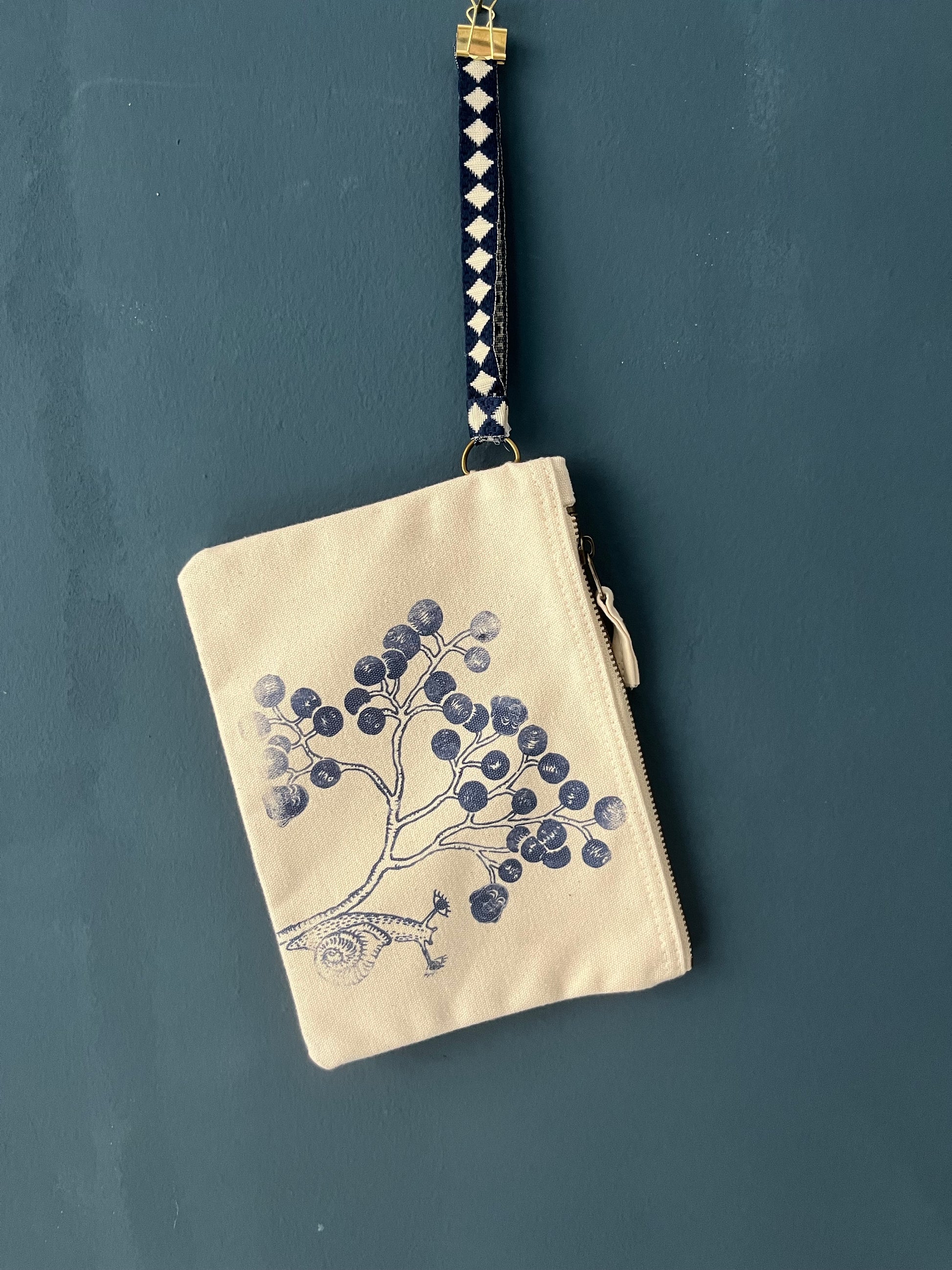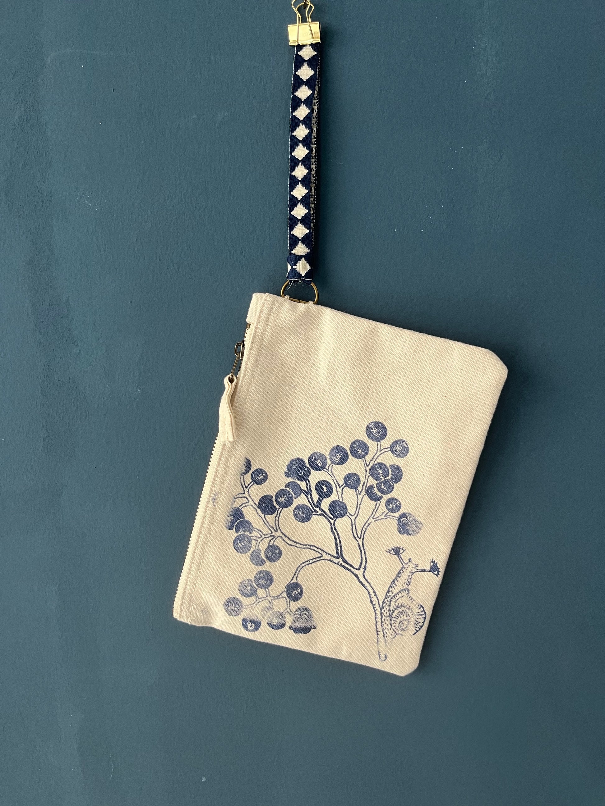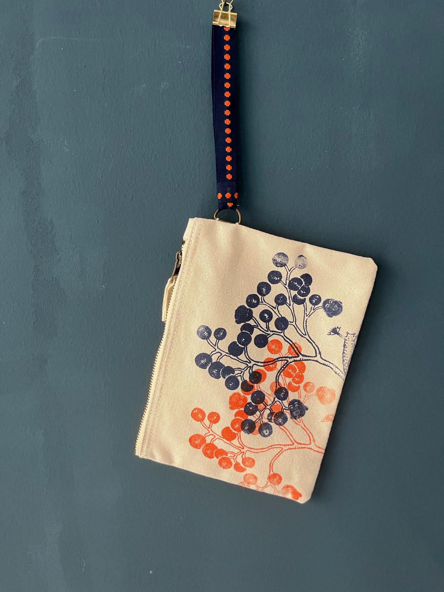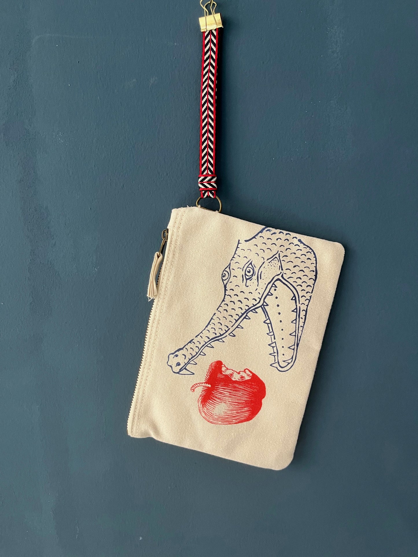 pochette piccola con tracolla da polso serigrafata