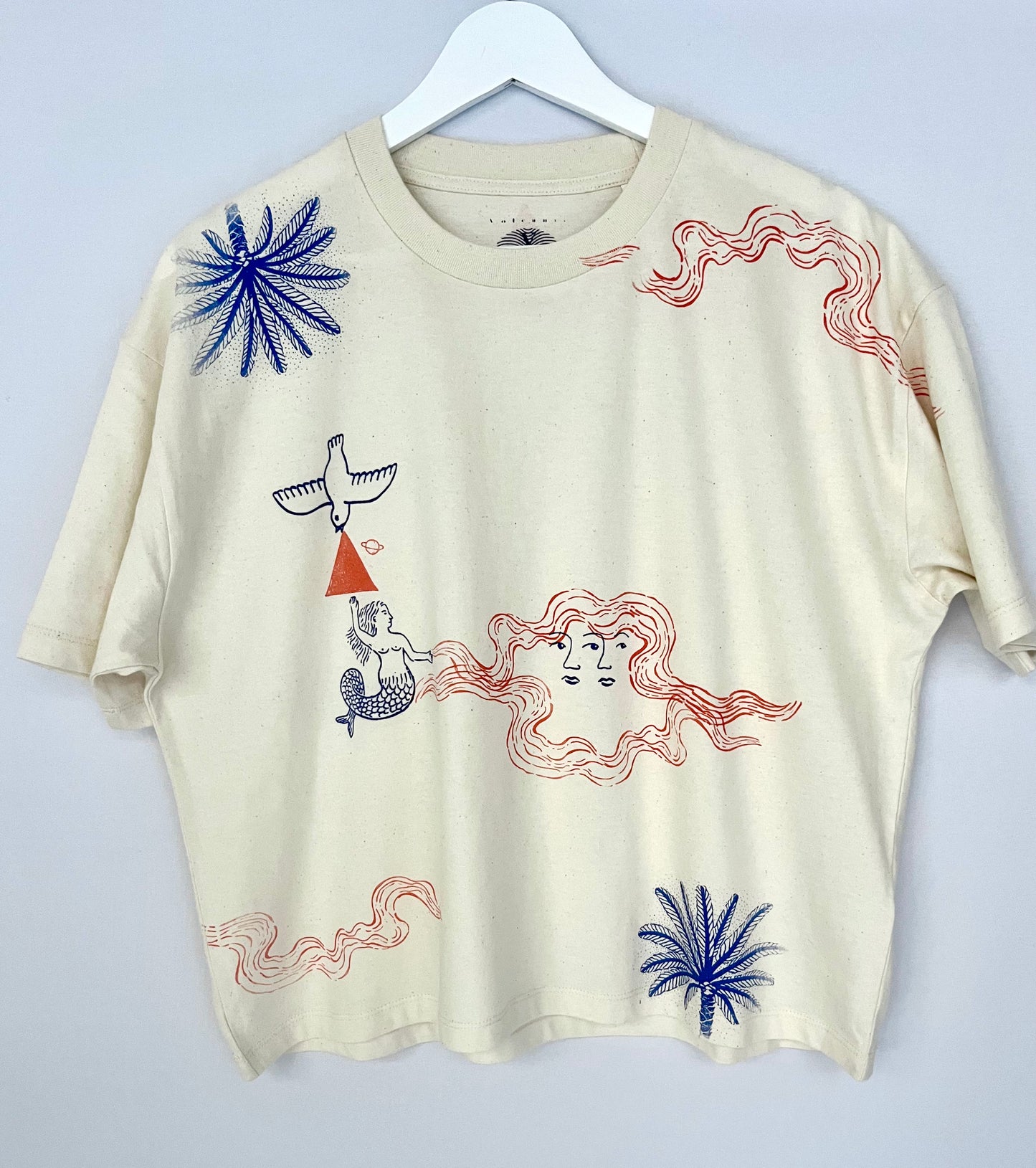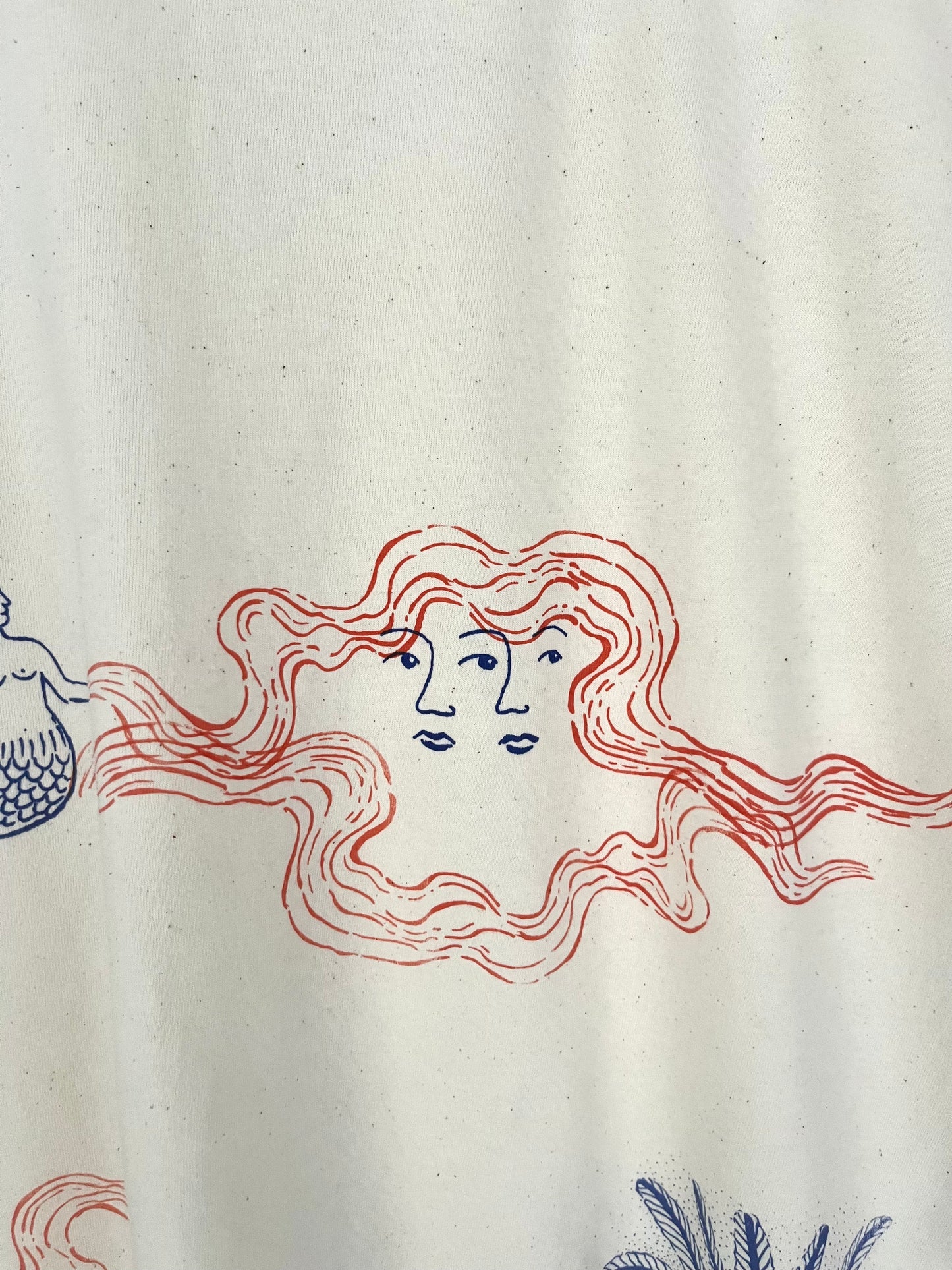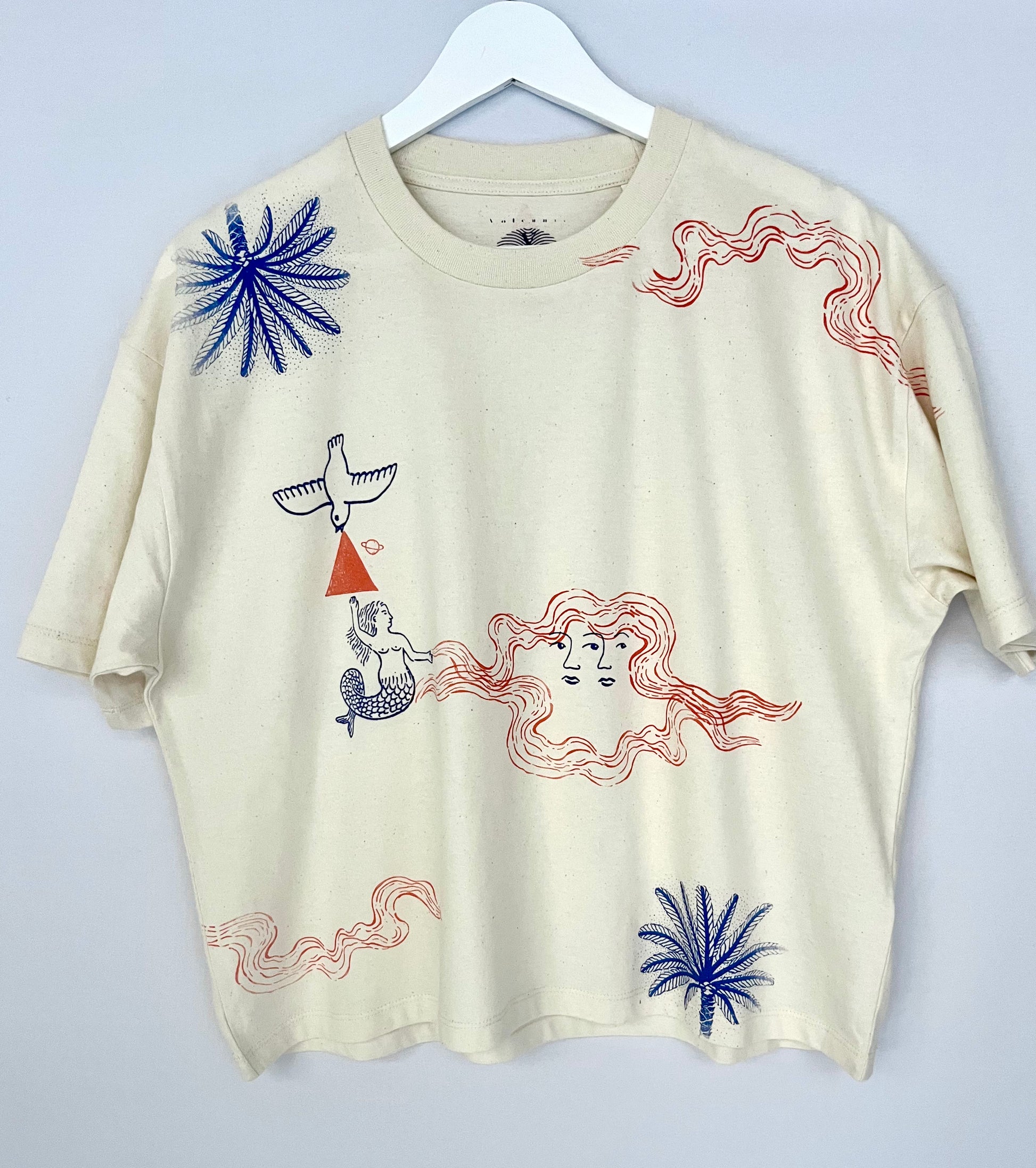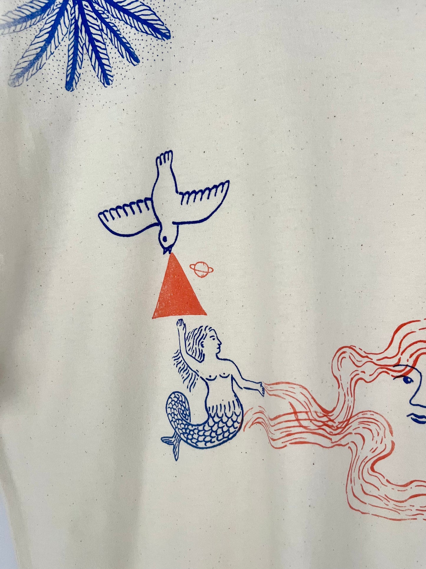 tshirt color raw serigrafata con figure marine in blu e arancio